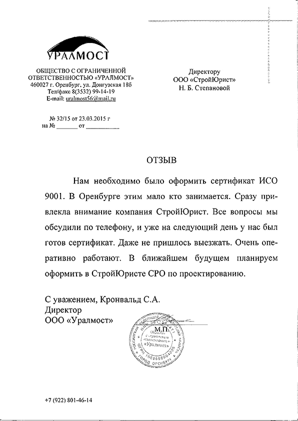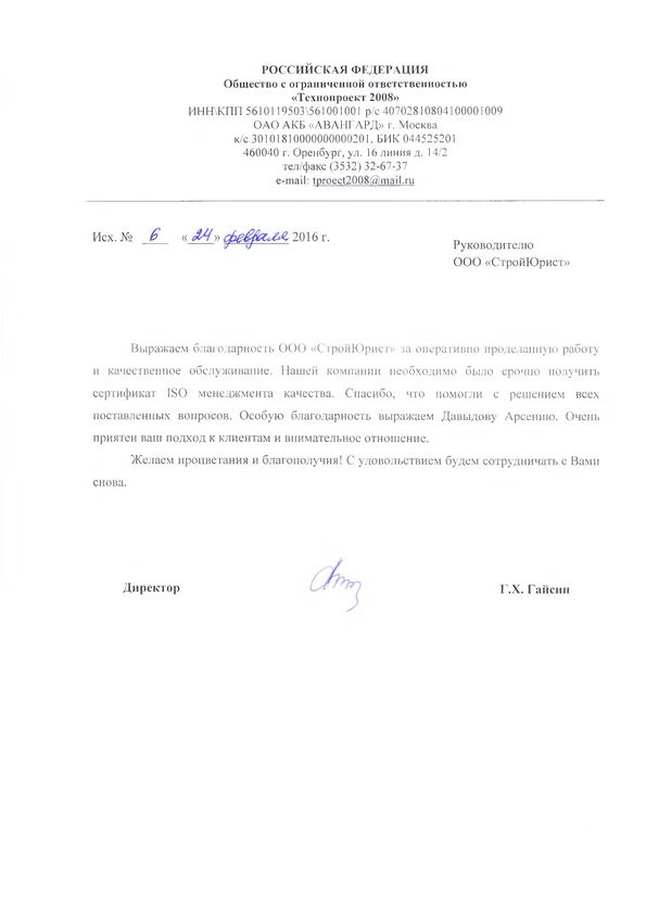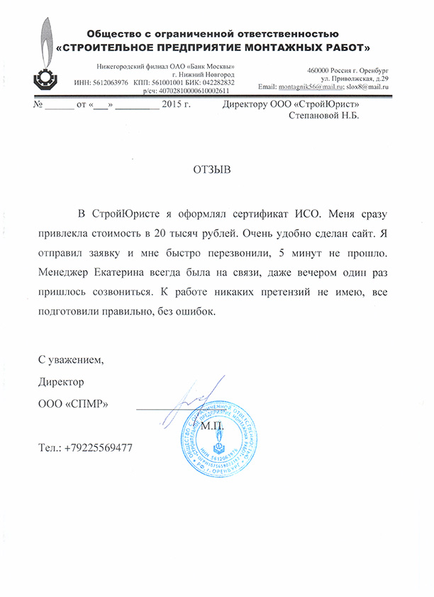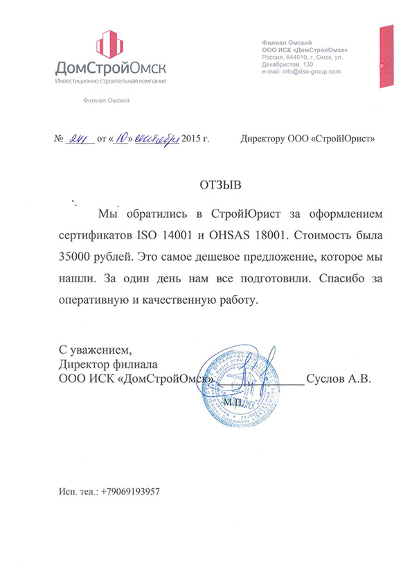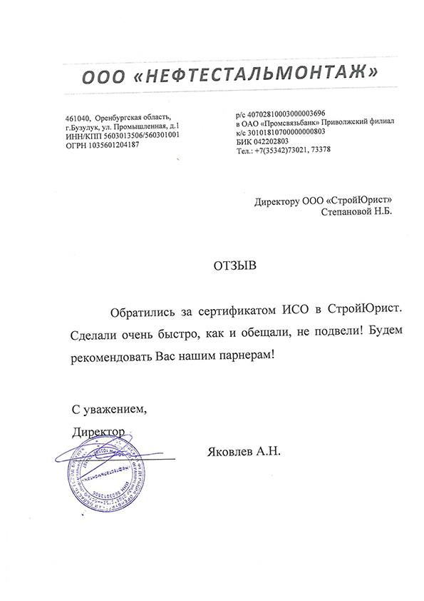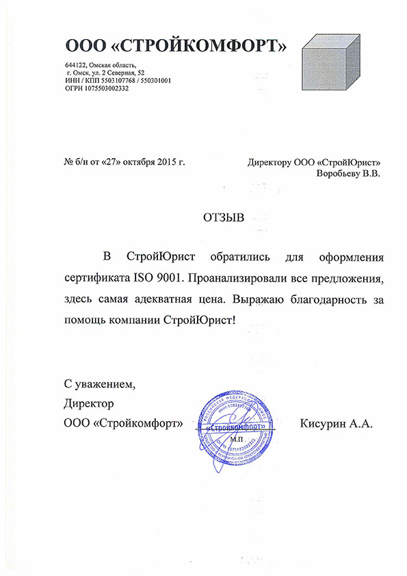 Отзывы клиентов "СтройЮрист" по ISO в Сочи