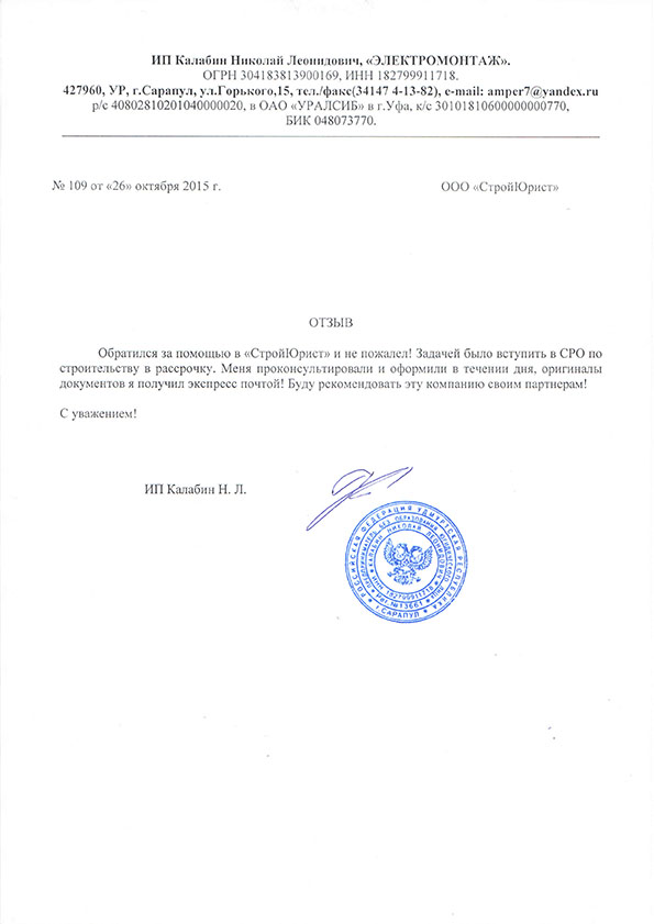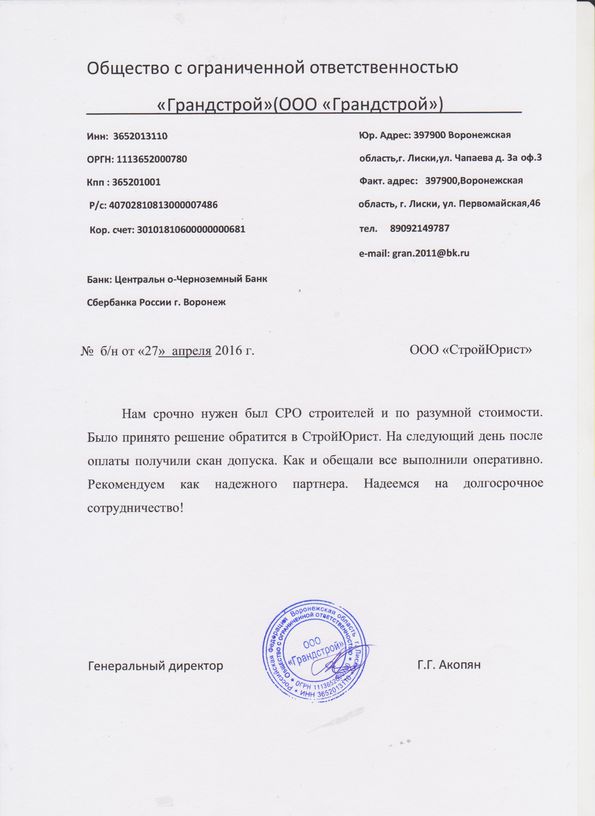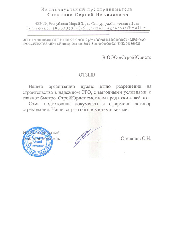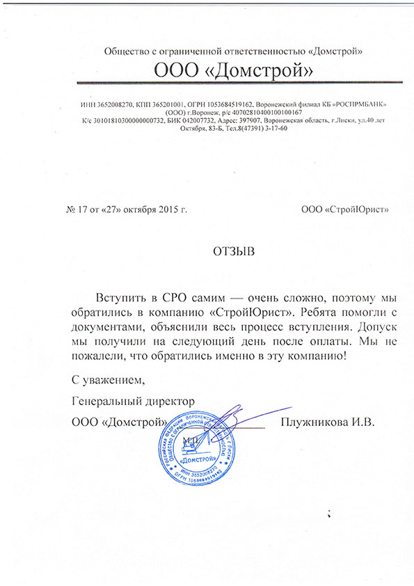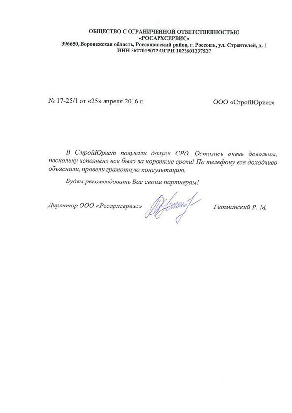 Отзывы клиентов "СтройЮрист" по вступлению в СРО в Сочи