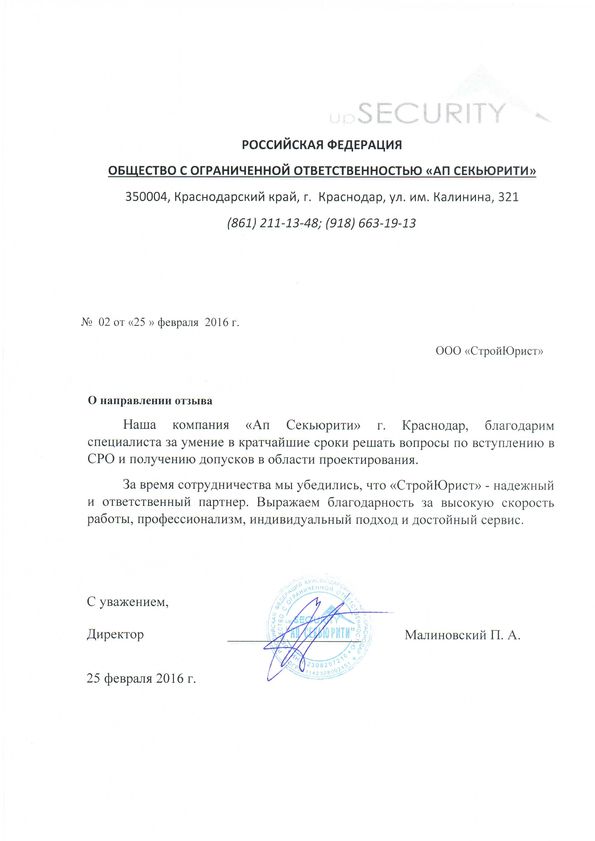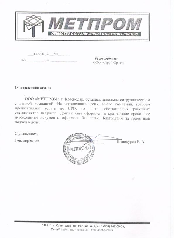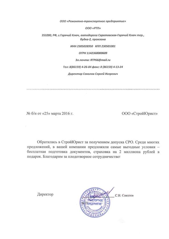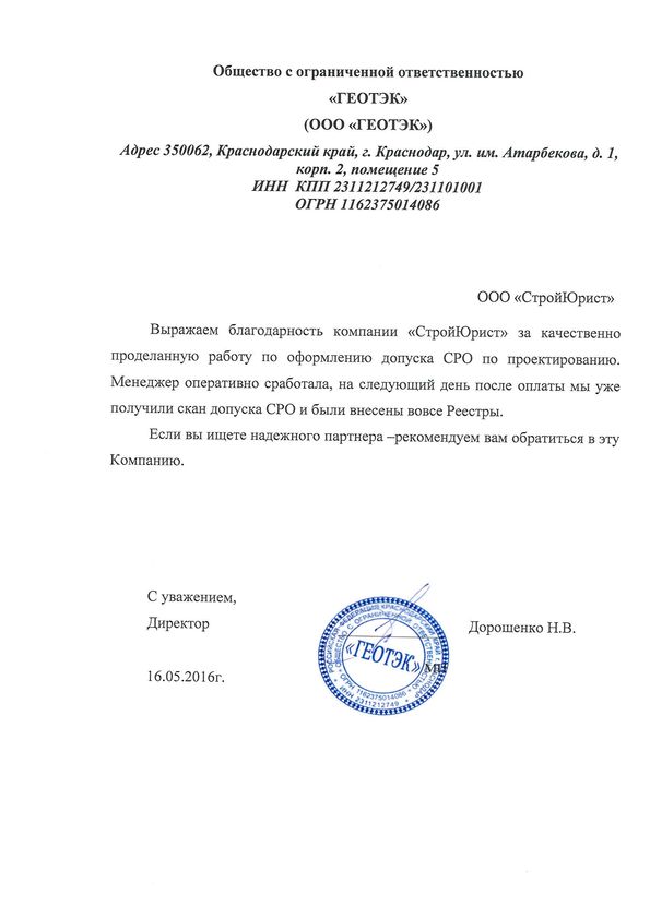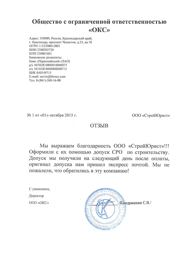 Отзывы клиентов "СтройЮрист" по вступлению в СРО в Сочи