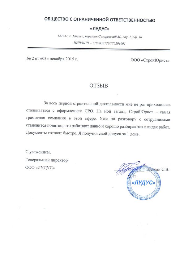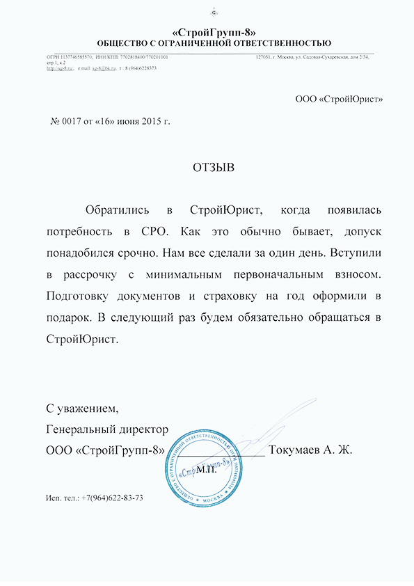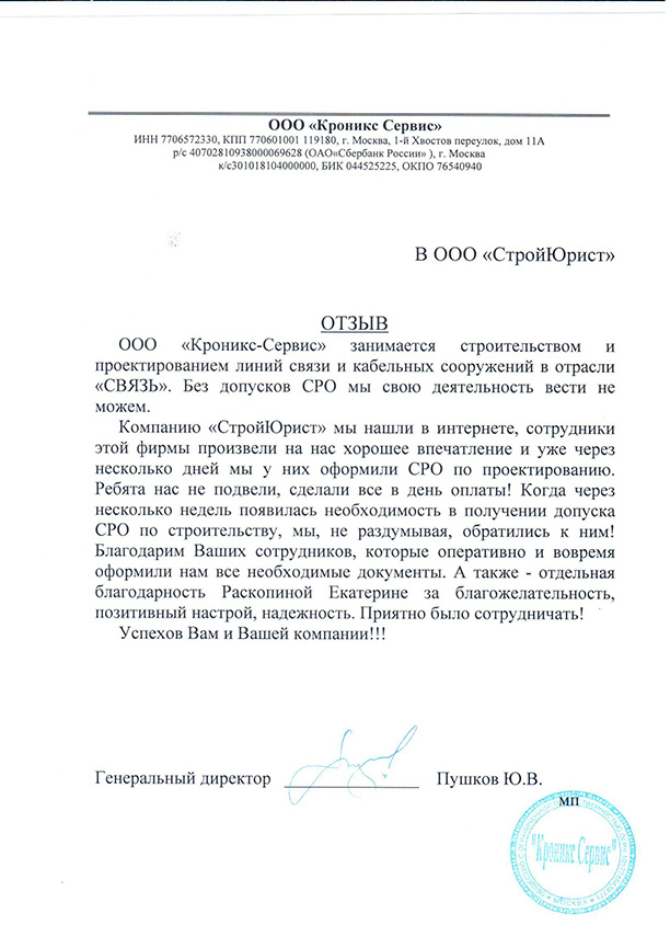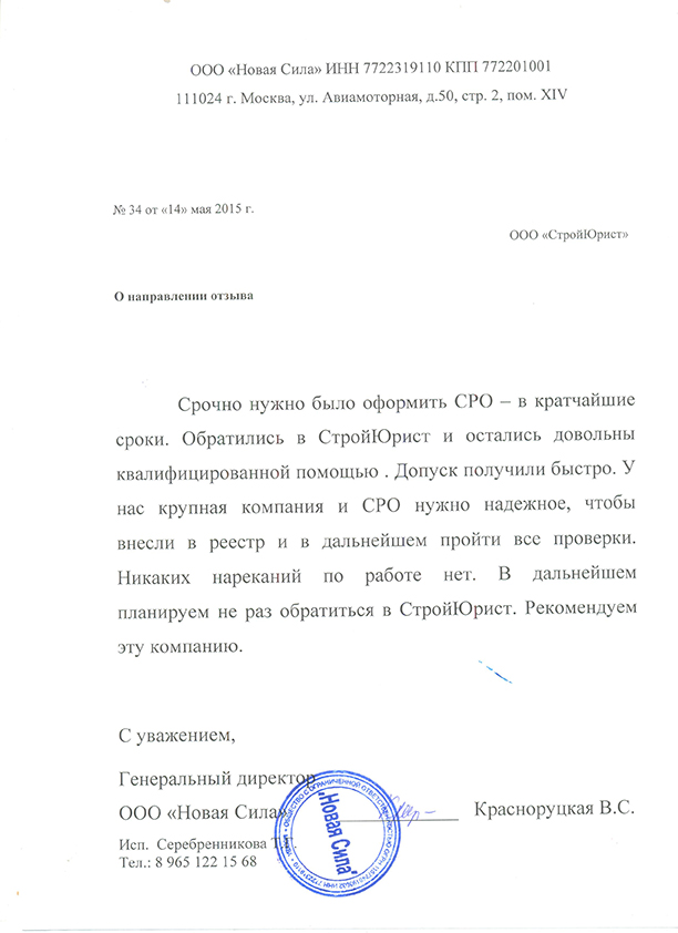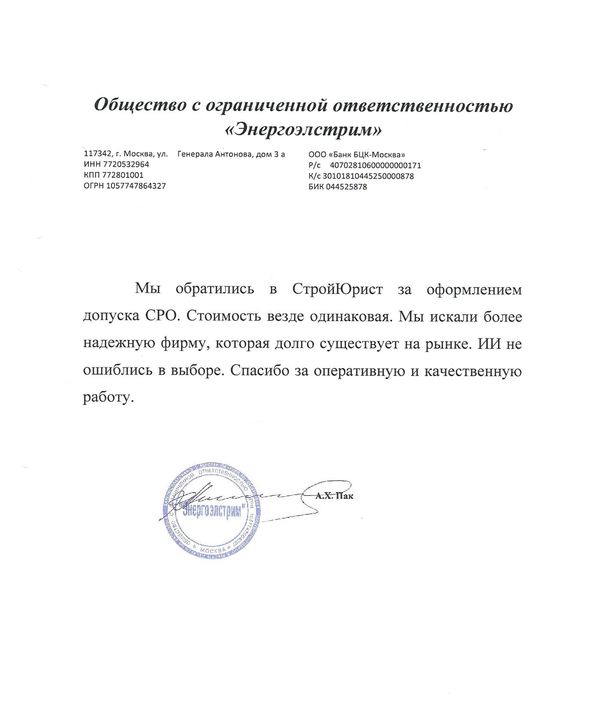 Отзывы клиентов "СтройЮрист" по вступлению в СРО в Сочи