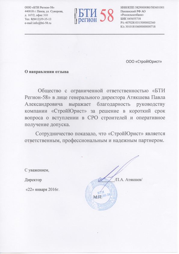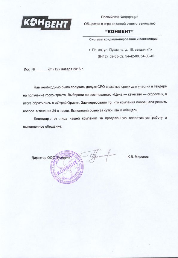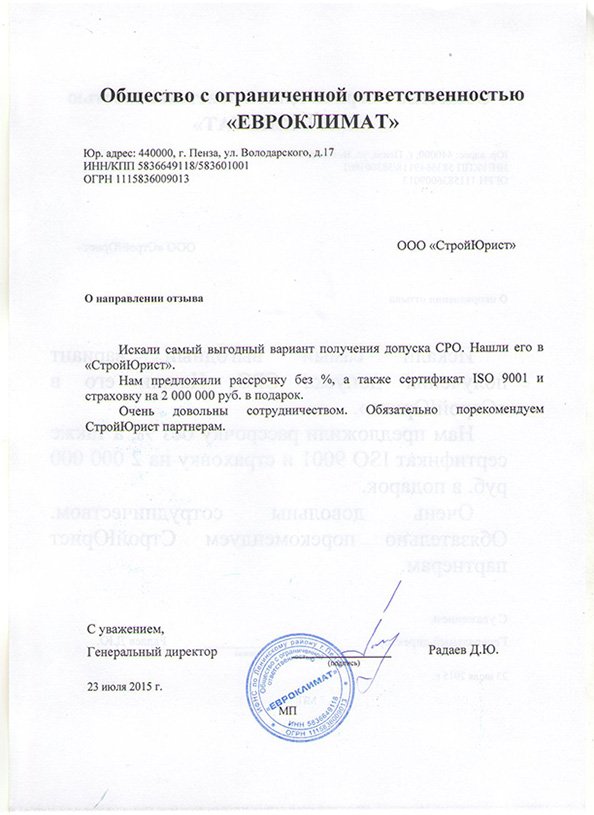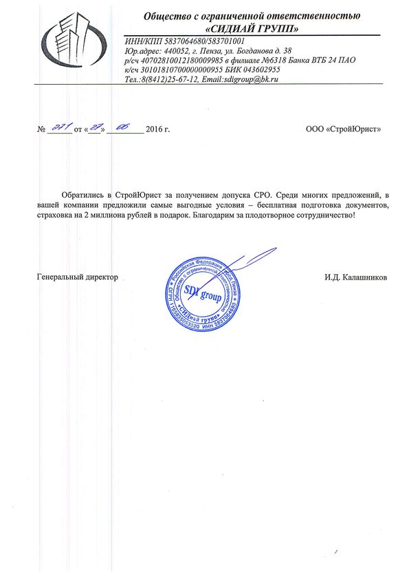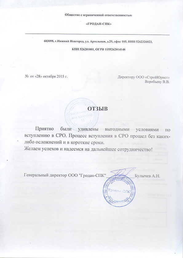 Отзывы клиентов "СтройЮрист" по вступлению в СРО в Сочи