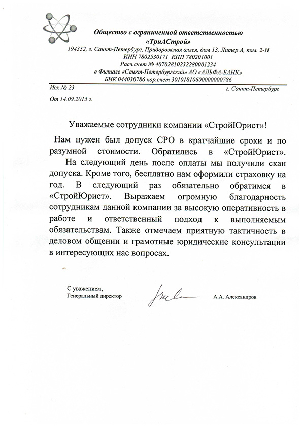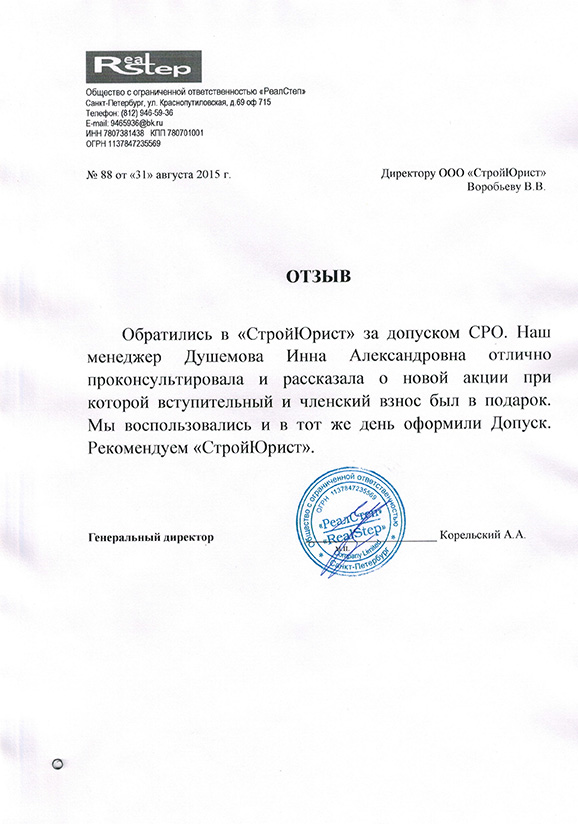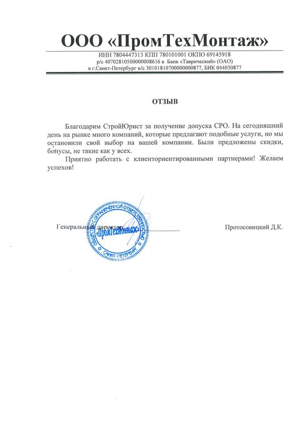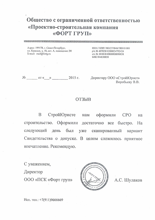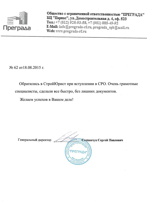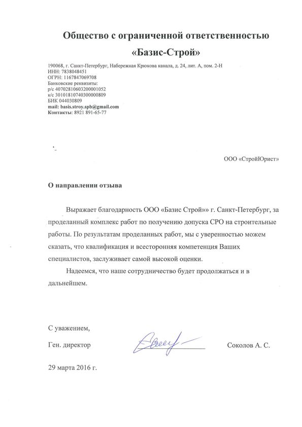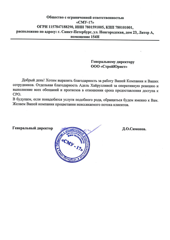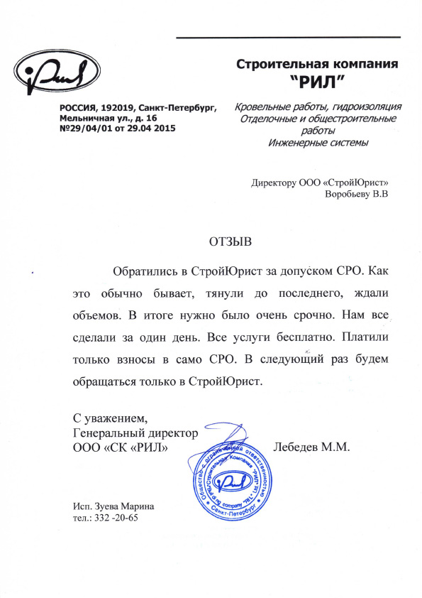Отзывы клиентов "СтройЮрист" по вступлению в СРО в Сочи