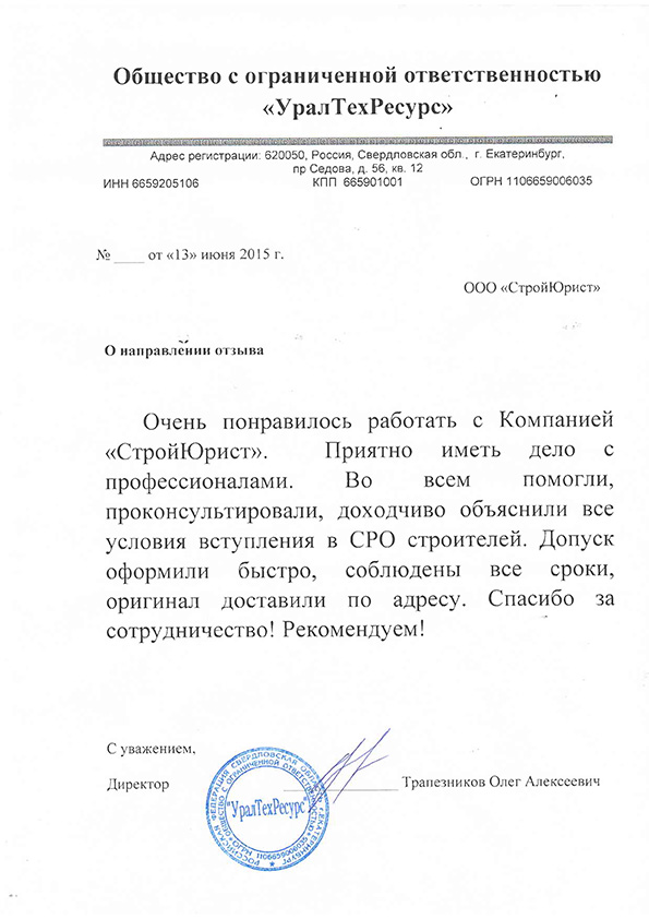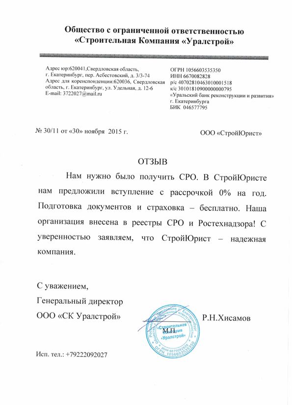 Отзывы клиентов "СтройЮрист" по вступлению в СРО в Сочи