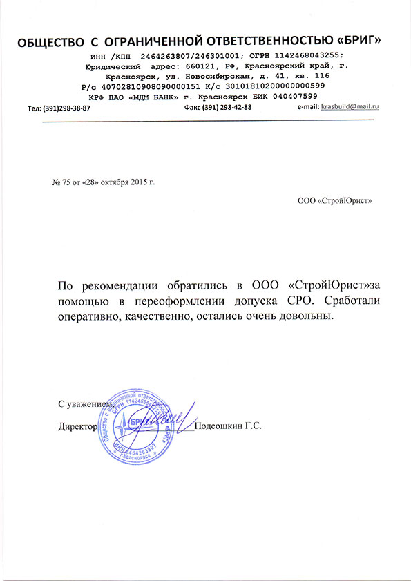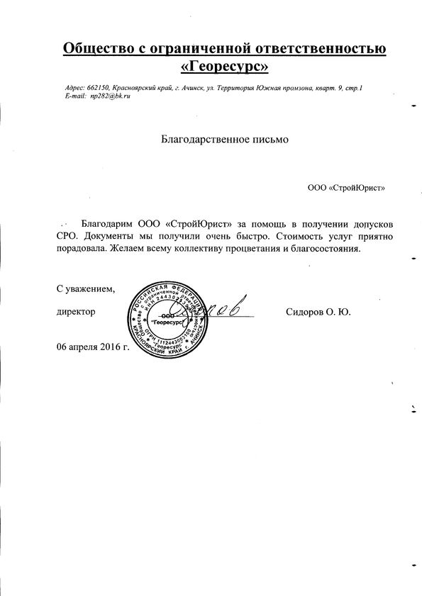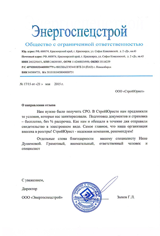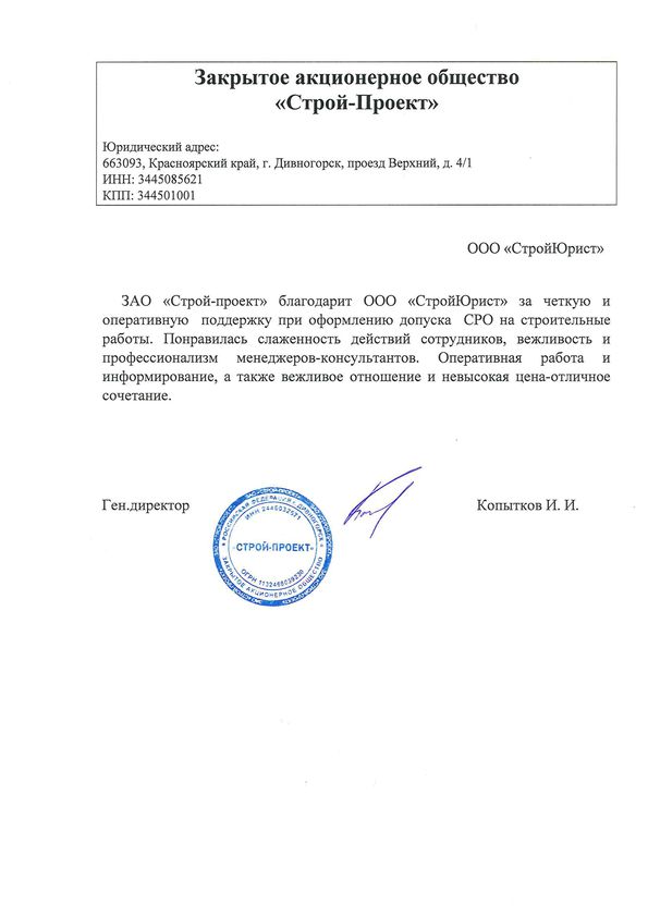 Отзывы клиентов "СтройЮрист" по вступлению в СРО в Сочи