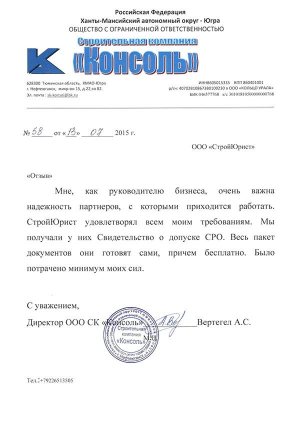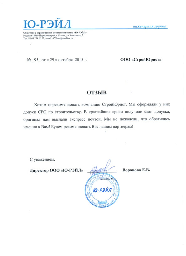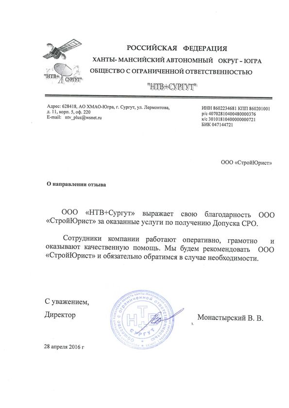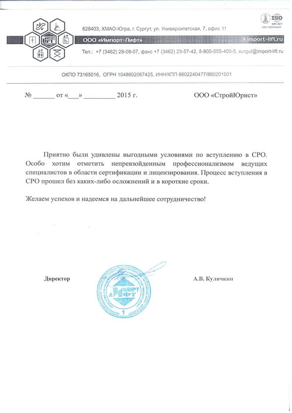 Отзывы клиентов "СтройЮрист" по вступлению в СРО в Сочи