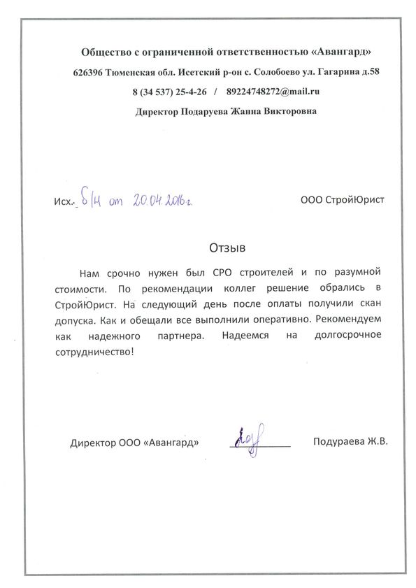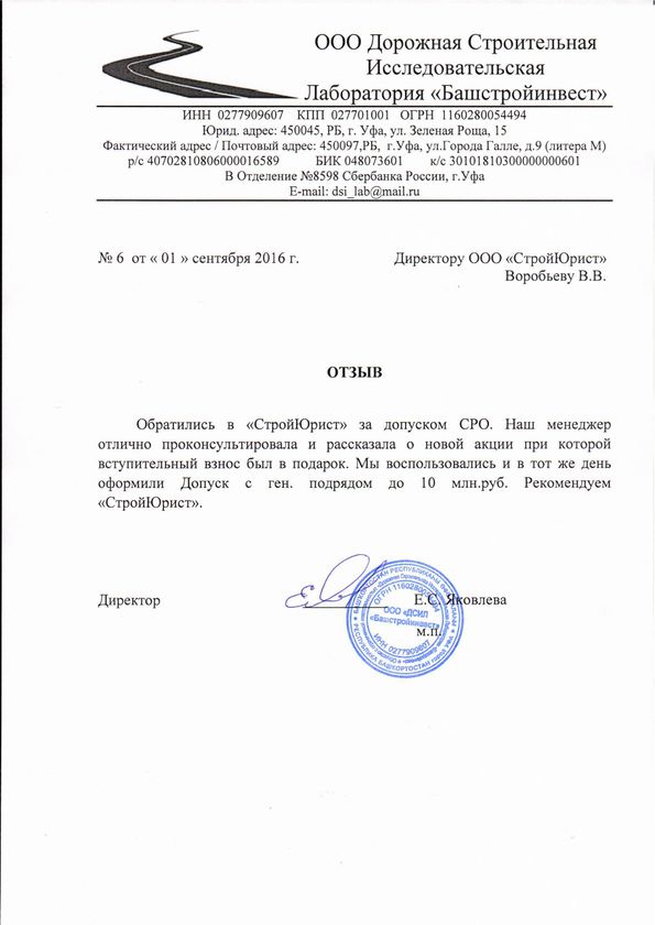 Отзывы клиентов "СтройЮрист" по вступлению в СРО в Сочи