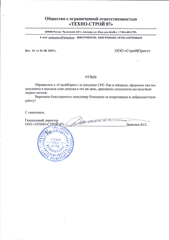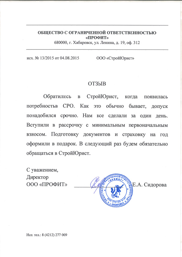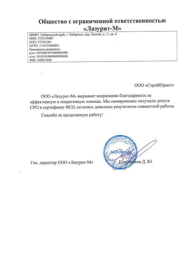 Отзывы клиентов "СтройЮрист" по вступлению в СРО в Сочи