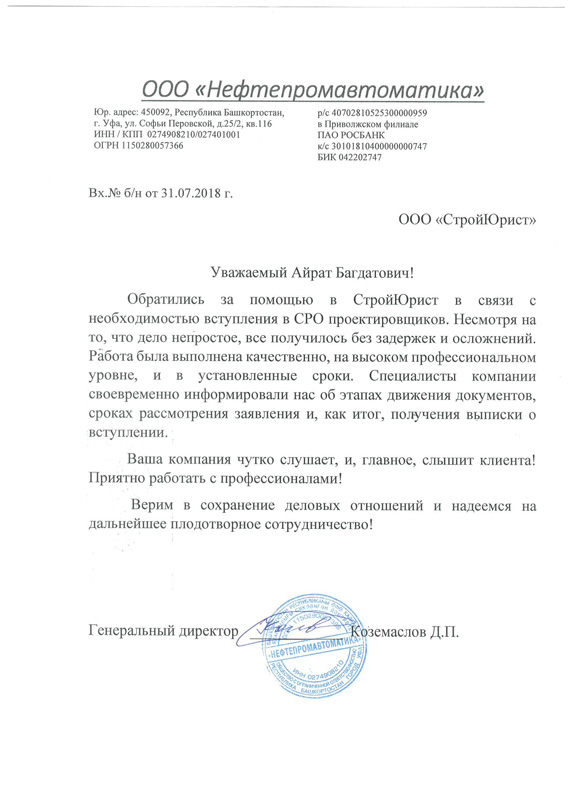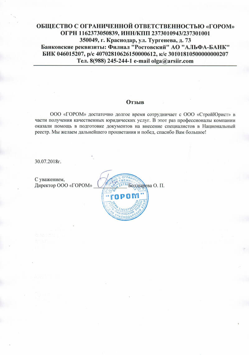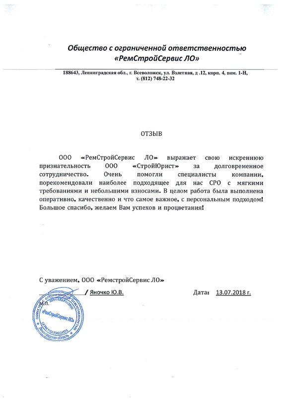 Отзывы клиентов "СтройЮрист" по вступлению в СРО в Сочи